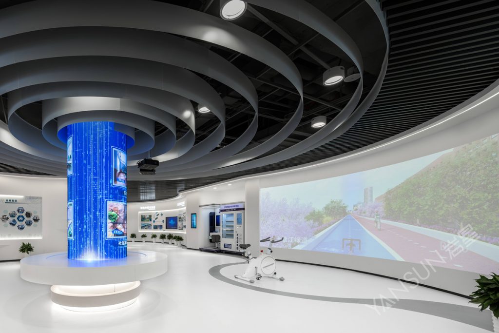 海智未來社區展廳位于浙江省寧波市杭州灣新區海智社區,展廳面積約840平方米,作為展示寧波“未來社區”建設理念的窗口,集中展示未來社區“三化五場景”的建設規劃與成果,是訪客了解未來社區打造概念與智慧服務等資訊的第一場所。展廳通過當代設計語言結合多媒體互動的展陳手段,打造出一個沉浸式體驗的科技智慧展館。